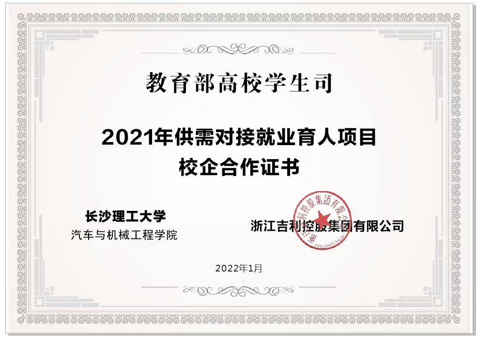 2022年1月19日,吉利汽车控股集团在湖北武汉举行了以“对话科技吉利,共育创新人才”为主题的高校共创峰会暨供需对接就业育人项目校企合作证书授牌仪式。