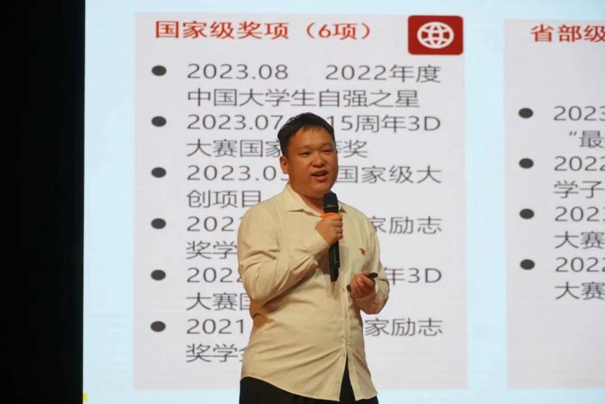 2022年中国大学生自强之星、2023年湖南省最美大学生、我院2020级宋东沼同学向大家讲述了他的成长经历。突如其来的意外让他的生活陷入短暂的迷茫。不过,他选择直面过往的苦难,坚定信念,走好当下“坎坷”的一路,以自己的亲身经历书写了青春奋斗故事。