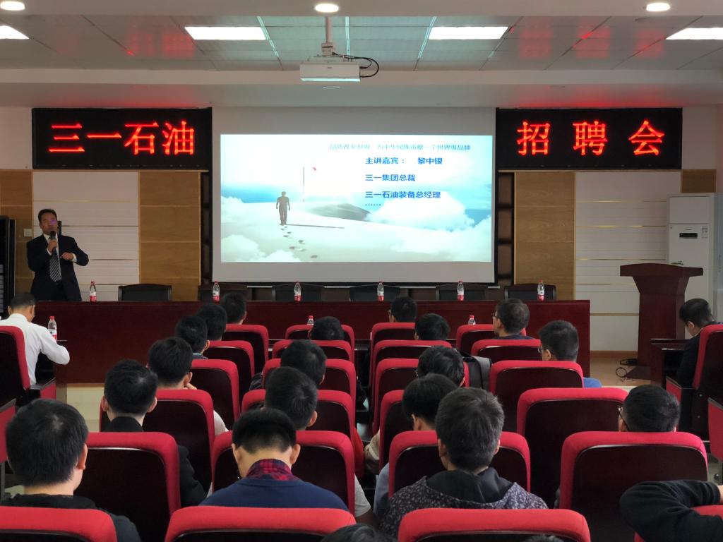 10月26 日,三一集团副总裁、三一石油智能装备有限公司总经理黎中银,三一石油智能装备有限公司常务副总经理缪雄辉等一行来学校汽机学院开展校企合作交流。学校招就处副处长贺良、汽机学院院长杜荣华、经管学院副书记涂道勇、汽机学院副书记靳攀科、贺尚红教授等参加了交流活动。