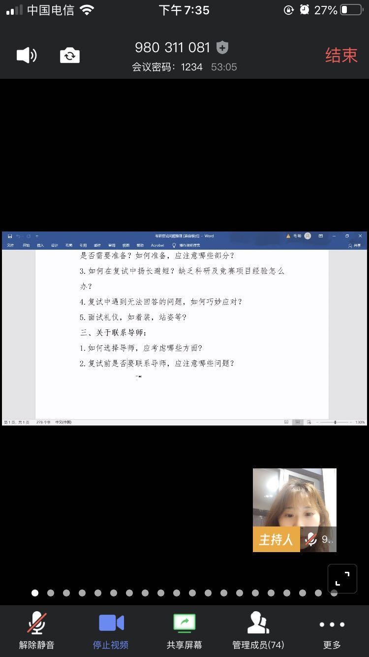 此次考研复试线上视频指导课的举办,一方面体现了疫情期间,学院对广大考研复试学子的深切关怀;另一方面,也为进入到考研复试的学子树立起自信心,保持良好的心态,积极去面对。(图文/陶蓝 审核/刘亚辉)
