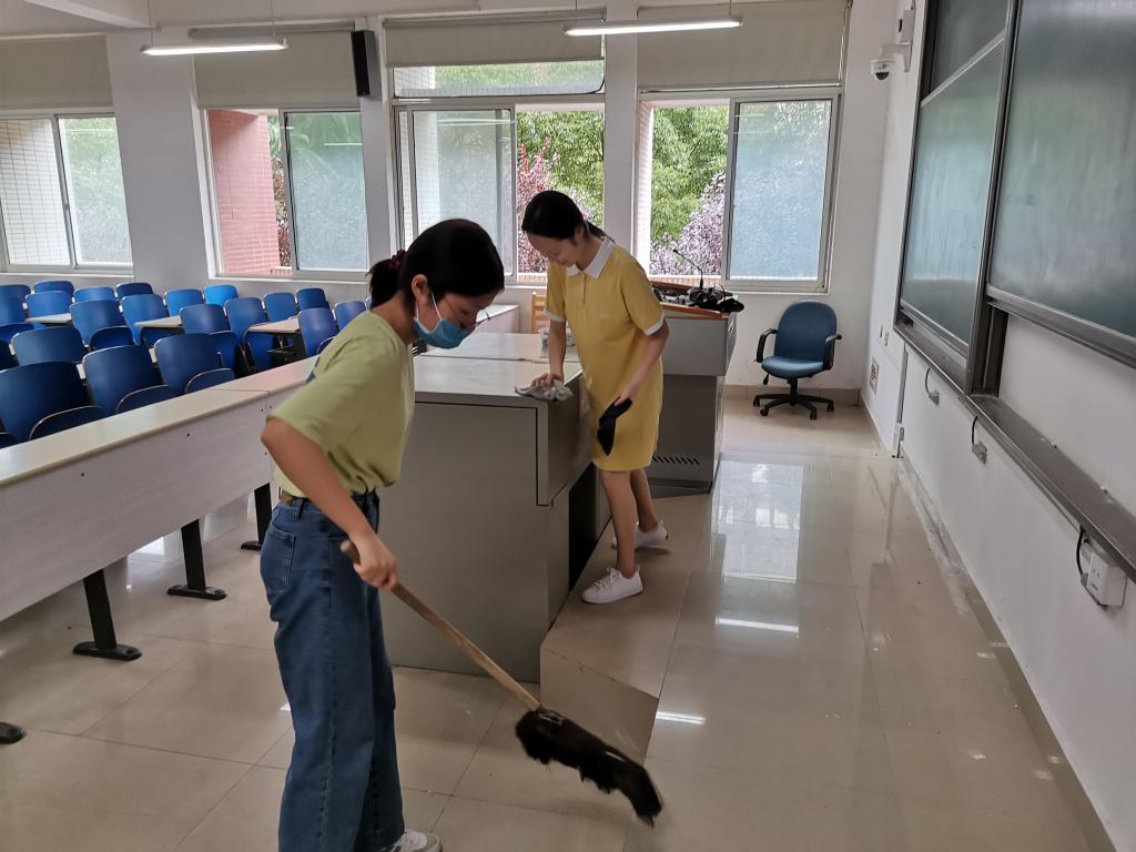 活动开始前,学院将毕业生党员们共分成八个小组,大家分组打扫工一教学楼各楼层及楼外周边卫生。平时的卫生死角经过清扫,干净了许多,各种垃圾也被清理出去。虽然天气闷热,但大家依然热情澎湃,纷纷觉得这是一次非常有纪念意义的活动。