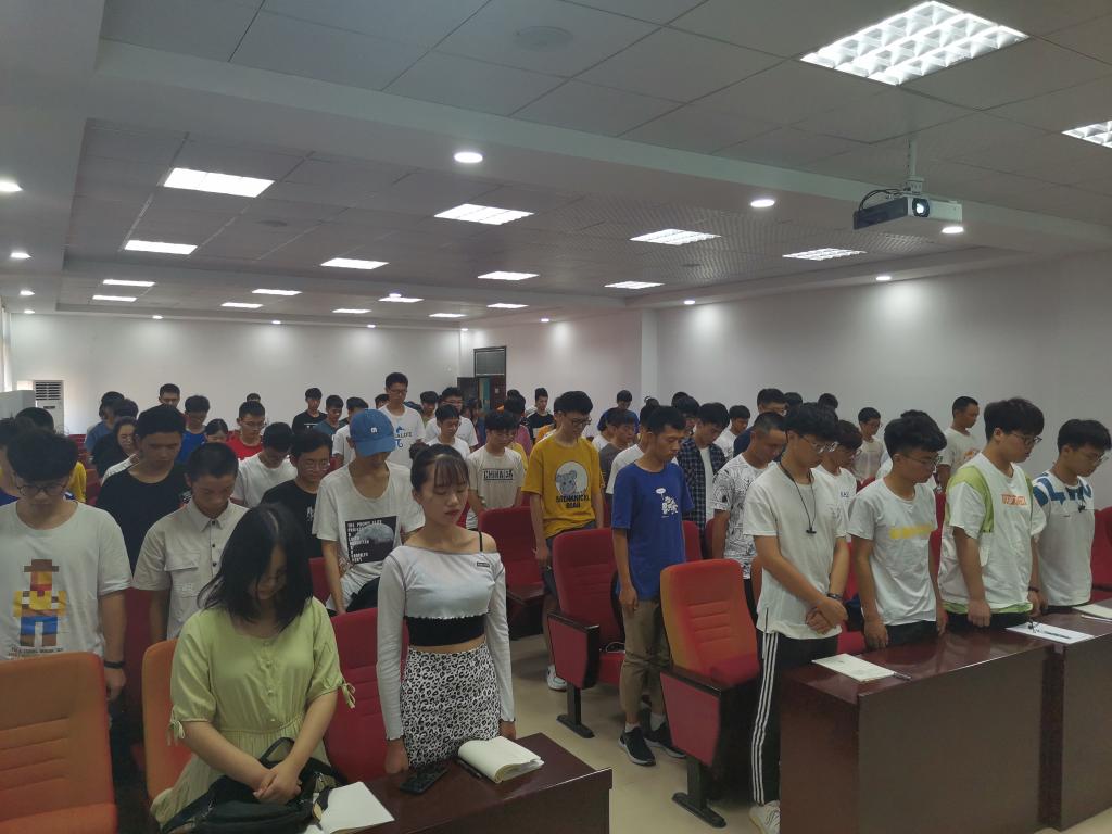 2020年9月3日上午,汽车与机械工程学院组织学生党员和入党积极分子在工科一号楼B417开展“胜利日-纪念中国人民抗日战争暨世界反法西斯战争胜利75周年”主题直播观看活动。学院党委书记邱国良、副书记刘亚辉、学生党总支副书记王丽丽以及90余名党员和入党积极分子参加本次活动。