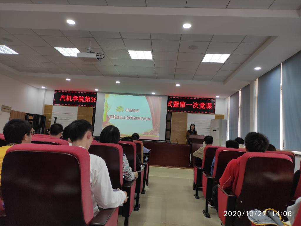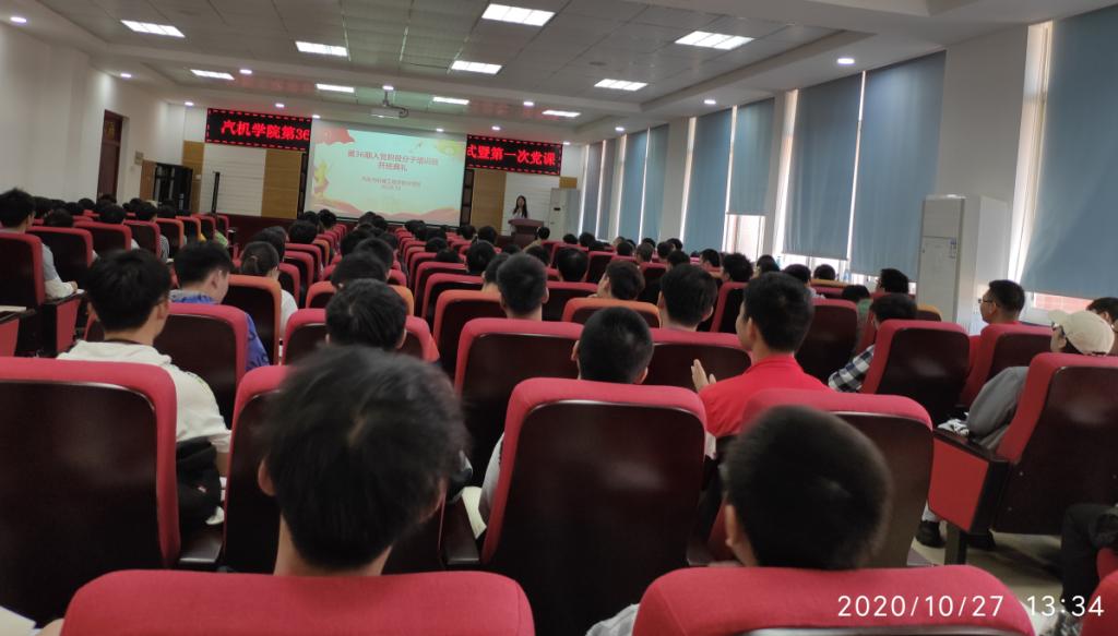 2020年1027日下午,汽车与机械工程学院第36期入党积极分子开班仪式在工一B417顺利举行。党建辅导员王丽丽、学生第四党支部副书记刘志华和本期127名入党积极分子参加仪式。