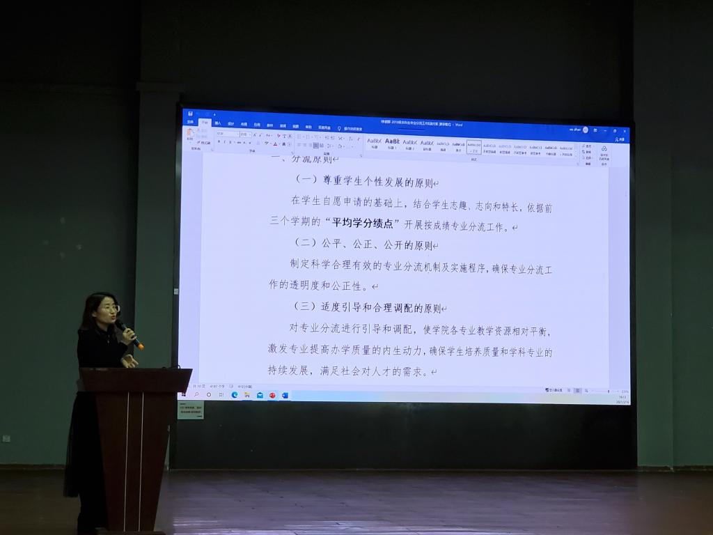 各系部老师从专业历史、就业前景、专业优势等方面,向同学们详细介绍了学院机械类分流专业:机械设计制造及其自动化,车辆工程,汽车服务工程和材料成型及控制工程。教务办李朝晖老师还为同学们解读了专业分流方案。各位老师对同学们的疑问进行了细致解答,让同学们对学院的各个专业以及专业分流方案有了一个清楚且仔细的了解。