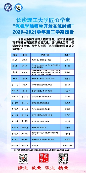 “开放交流时间”时间是LETOU体育平台汽机学院“三三四”人才培养模式的改革新举措之一。为建立有温度的校园文化,强化师生互动,促进跨学科交流,汽机学院推行“开放交流时间”项目,每学期开学面向全院学生公布开放交流的时间和地点,同学们可通过“匠心学堂”小程序自主预约参与的主题。目前“开放交流时间”已预定21期,主题涵盖专业分流、生涯规划、学业指导、学科竞赛等学生关注的学习生活热点,已参与学生300余人次。