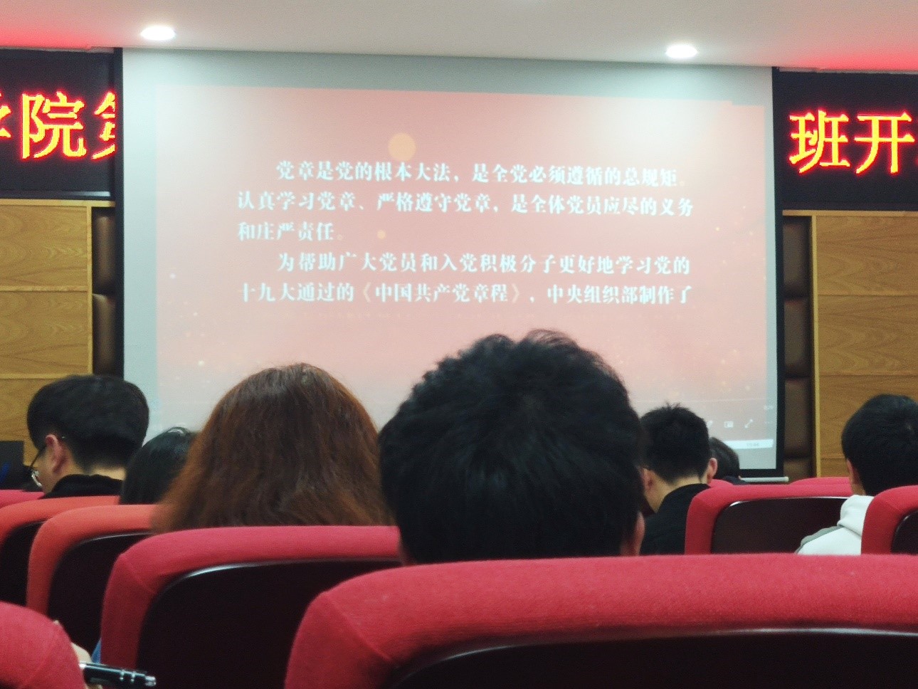 4月7日晚上19:40,汽车与机械工程学院第14期发展对象培训班在工科一号楼B417开展第一次党课,第14期发展对象培训班109名学员参加了党课学习。