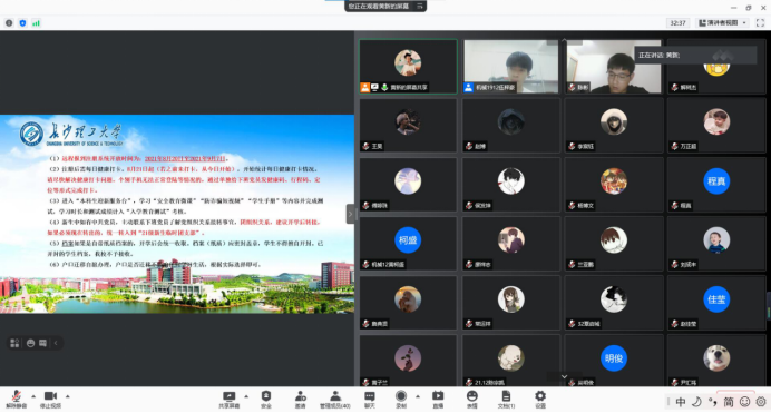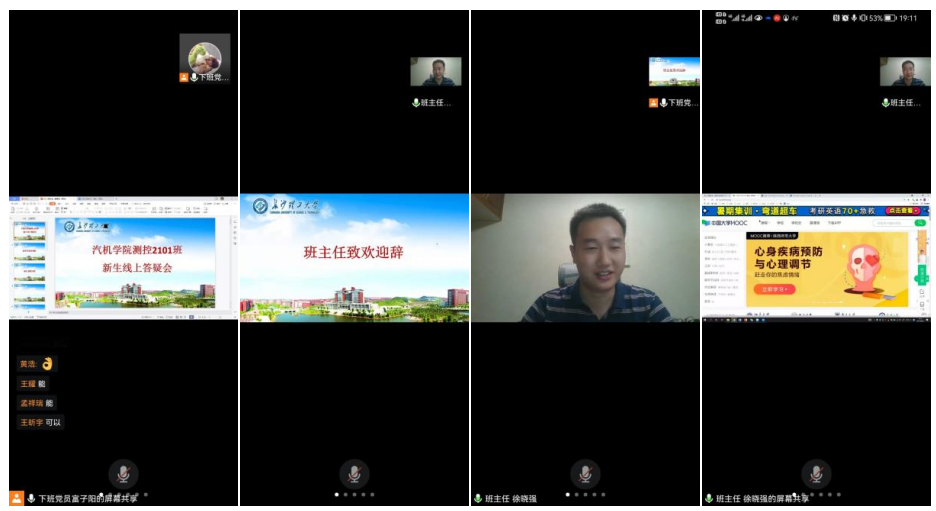 答疑班会由各个新生班级的下班党员主持,各班下班党员简要说明了本次线上交流会的目的和意义,并且介绍了会议议程:下班党员自我介绍,班主任老师致辞,新生自我介绍,带领学生通读《2021级新生入校有关管理要求和注意事项》,对新生所存在的问题进行集中答疑。