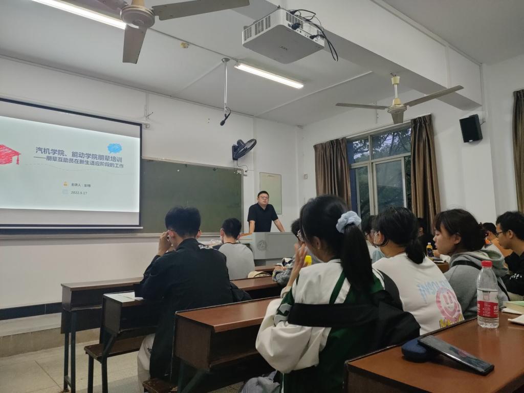 2022年5月17日星期二晚,我院对21级朋辈心理互助员开展了第一次培训工作。本次培训由汽机学院部联合能动学院心理部共同举办,彭博老师担任授课老师,主要讲解朋辈互助员在新生适应阶段的工作。