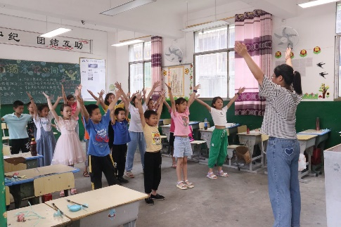 当天的课程依然精彩纷呈,队长贺君豪秉承“芙蓉学子-乡村振兴”项目的宗旨,在教授完大班课程后,又为初中的同学们讲述了环保核能的知识。此外,在队友们的精心准备下,该团队继续为同学们带来了精彩的音乐、舞蹈、英语、篆刻等课程。