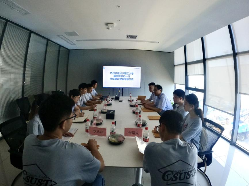 随后,实践团与星邦智能研究院副院长李勇、星邦智能人力资源总监程坦等展开座谈会。在座谈会上,人力资源总监程坦热情地向实践团成员介绍了公司实现“百亿星邦”的战略部署;研究院副院长李勇就校企合作方面展开论述,他从失败的校企合作案例中总结出常见问题:“合作不够深入、合作机制不健全、合作缺乏评价标准和评价体系以及合作过程中的责、权、利分不清。”并针对校企合作中出现的观念问题给出“搁置观念分歧,推动合作先行;完善合作制度,让合作有章可循”的解决方案,指导老师唐宏宾也对此表示深深认同,他说到:“成功的校企合作是学生、企业和学校共赢的合作模式,校企合作双方应当互相支持、双向介入、优势互补、资源互用。”