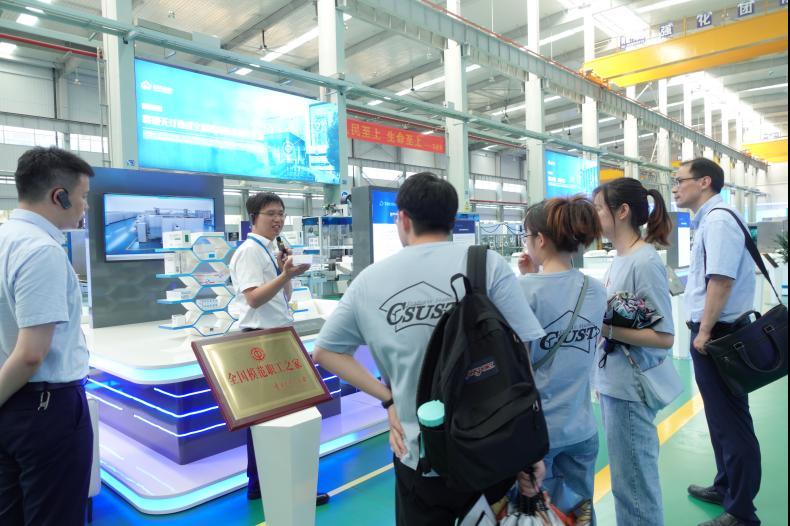 到达公司后,在公司人力资源总经理唐美强的带领下,实践团进入楚天科技股份有限公司接待大楼,并在剧院中心观看了公司的宣传片,了解了公司发展状况与规模;随后,唐美强经理带领实践团参观了研发中心大楼及中央车间,在中央车间向实践团介绍了公司概况和品牌文化,大家在了解到公司的历史和品牌文化的同时,也认识到了楚天坚持“ 做受尊敬的人、造受尊敬的产品、办受尊敬的企业”的核心价值观,秉承“ 要么唯一,要么第一”的理念,弘扬 “因为执着,所以卓越”的精神。接着大家进入车间生产制造流水线场地,了解了固体制剂、无菌制剂、制药用水、新冠疫苗检测试剂等产品以及高精度要求的生产设备,通过参观,实践团对楚天科技的规模、文化和发展等各个方面有了更加全面而深入的了解,同时也近距离感受到了工业4.0时代,智能化、机器化对楚天科技带来的变化。