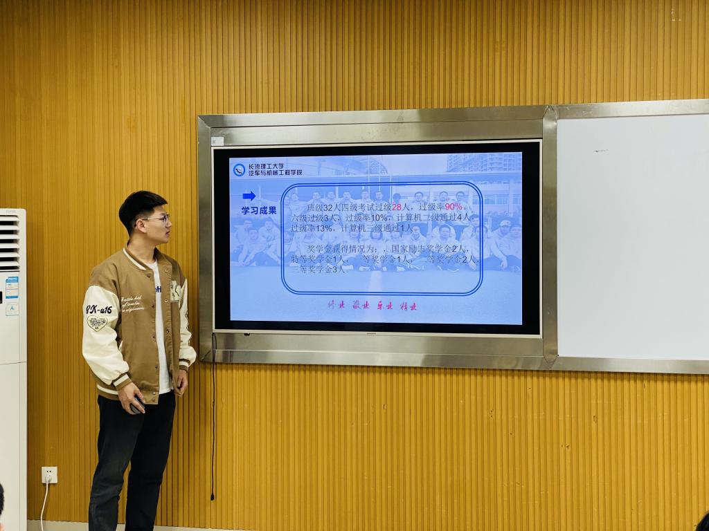 本次验收评比大会是由20、21级共8个已经进行“先进班集体”立项答辩的班级参加。各班级汇报人根据班级情况、学风建设、宿舍管理、文体活动、党团建设、科技创新等方面介绍了立项以来班级取得的优异成绩。各班代表信心十足,用精美的PPT、幽默独特的语言风格展现班级富有活力的一面,力图将最精彩、最青春的班级风采展现出来。