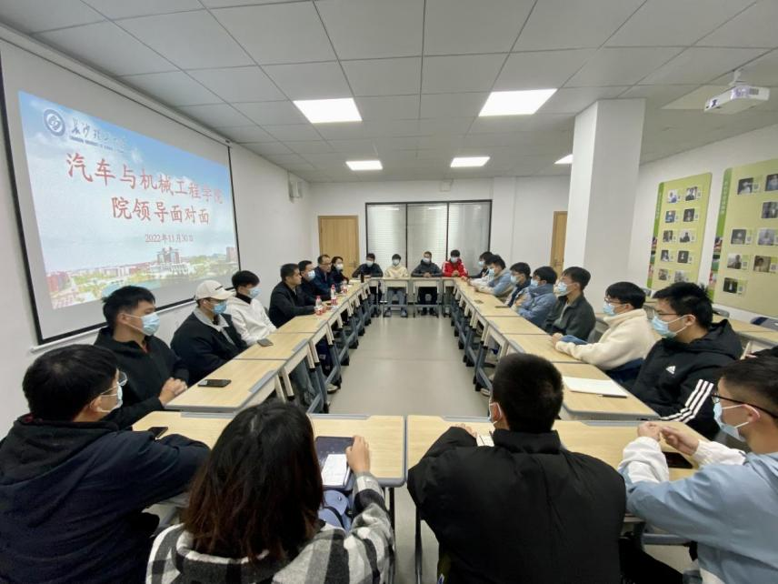 为了全面了解近期同学们的思想动态和学习生活状况,及时解决同学们目前面临的问题,汽机学院11月30日下午14:30在行健轩五栋“匠心学堂”育人社区组织召开了2022年度第四次“院领导面对面”。来自学院2019级、2020级、2021级等三个年级的24位学生代表参加了此次座谈。学院党委书记施一满、院长杜荣华、各年级辅导员老师到会认真听取意见,会议由学院党委副书记唐宏宾主持。