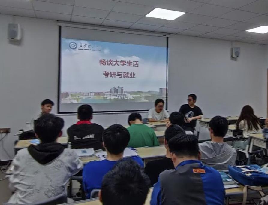 汽机学院4月18日下午16:30在行健轩五栋“匠心学堂”育人社区组织召开了主题为“考研与就业”的师生开放交流活动。测控2102班班主任何知义老师参加了此次座谈会,与学生面对面交流,现场答疑解惑。