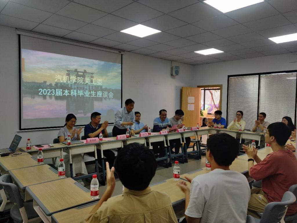 揭牌仪式后,在育人社区召开了2023届本科毕业生座谈会。座谈会上,毕业生代表踊跃发言,分享了个人成长经历和未来规划,并对学院人才培养和日常管理提出了意见和建议。机械1912班黄淋同学讲述了自身在面临就业选择时,学院老师在社区对他开展生涯规划辅导,对自己的帮助很大,同时还自豪说,学院建立的育人社区对同学们在自主学习、备战考研考公等提供了很大便利;机械1901班的熊明现同学谈到自己入学时缺少学科竞赛渠道,羡慕现在的同学可以直接在社区获取学科竞赛信息。