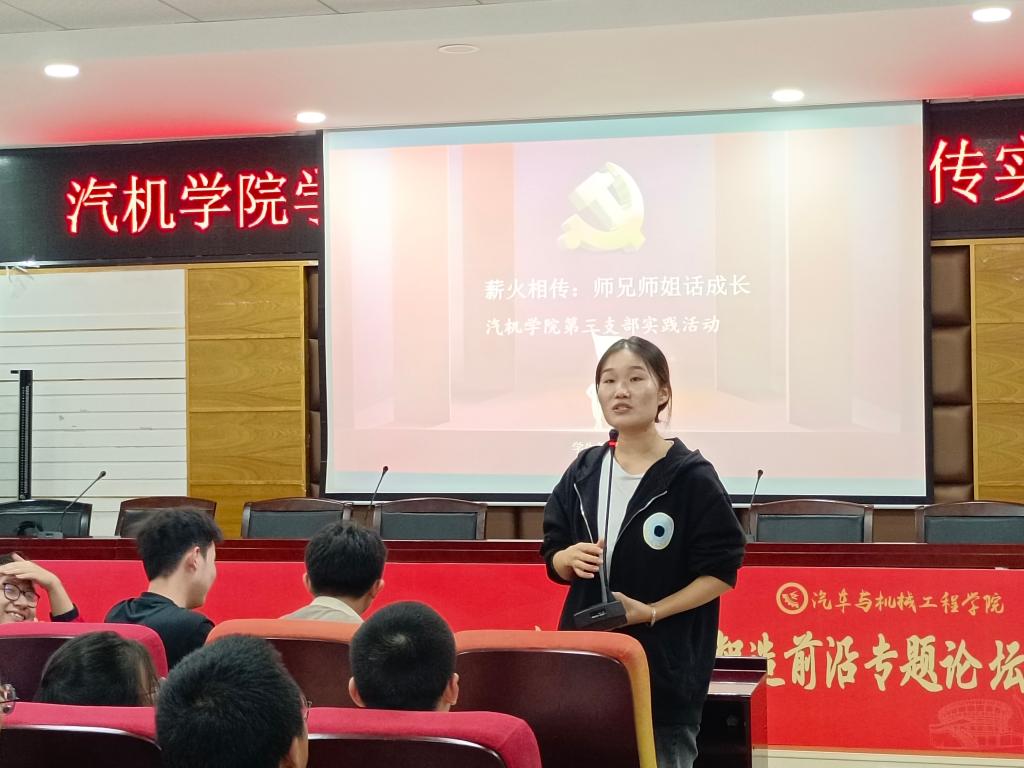 10月31日,汽车与机械工程学院学生第三党支部于工一B417开展了主题为“薪火相传——师兄师姐话成长”实践活动。活动由支部副书记潘倩主持,22级、23级120余名同学参加。