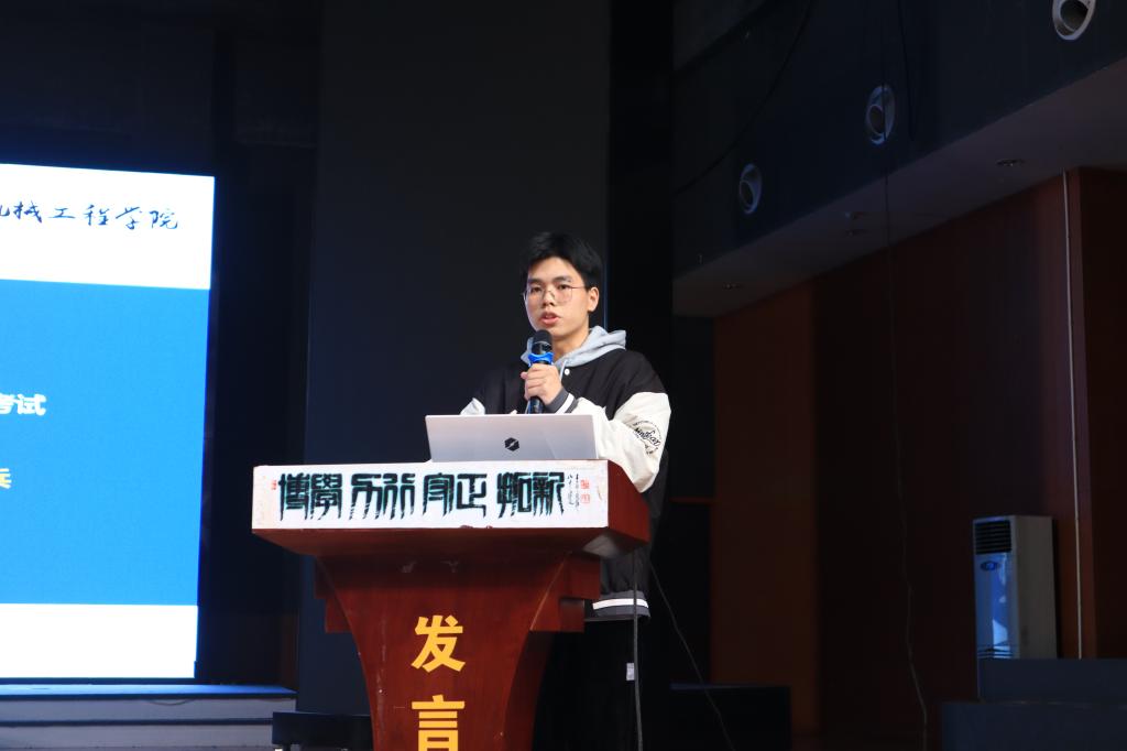 会议第四项,优秀班集体以及优秀学生学习、成长经验分享。首先测控2101班团支书王斯渝同学讲述了他们班在各方面获得的成果以及未来展望。随后詹典贤同学从专业学习和学科竞赛两方面进行分享,并向我们分享了二十四字:学海无涯,惟勤是岸;科技竞赛,敢闯敢创;追求卓越,进取不止,并在最后鼓励我们都要做一个大步向前的追光者。然后方晓晴同学基于“忠于学生本职,追求全面绽放”的主题,分别向我们分享了专业学习、科学竞赛、学生工作三方面的丰富经验。最后她指出有所热爱,有所付出,便能有所回报!最后宋东沼同学以“破冰”一词开始了他的分享,先讲述了他面临的考验,再到他引用海明威的一句话“一个人可以被毁灭,但不能被打败”,让同学们看到了他的勇气和毅力。宋学长的分享让我们明白了什么叫做越努力,越幸运!
