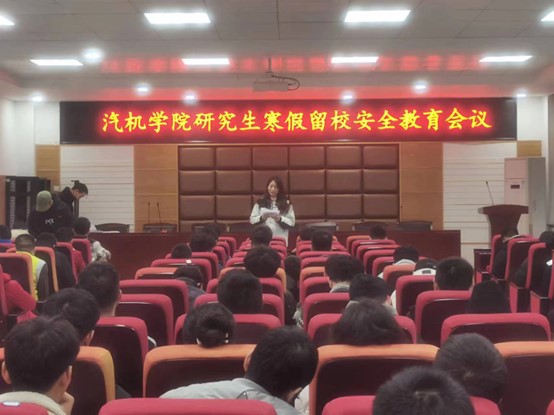 为做好寒假留校学生的安全教育和管理工作,落实学校寒假工作相关要求,汽机学院研究生辅导员万雨晴于2024年1月9日晚在LETOU体育平台云塘校区工科一号楼B417组织各年级研究生召开了“留校安全教育”主题班会,汽机学院副书记兼副院长唐宏宾参加了此次主题班会。