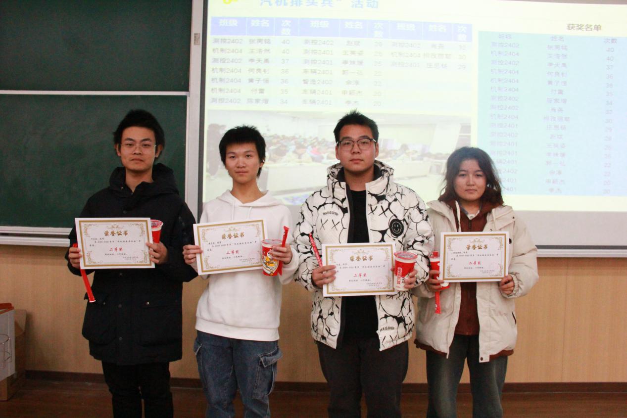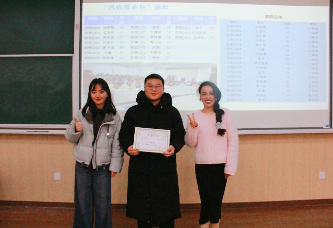 在学期考勤总结环节,大会公布了各班本学期平均日到课率,其中材型专升本,材型2401班以99.89%的高到课率位居榜首,展现了同学们极高的学习积极性。大会还对周平均到课率进行了横向、纵向对比分析,指出了部分班级的波动情况,并提出了改进措施,包括严格考勤制度、及时反馈与沟通等。接着为了激励同学们,大会公布了“汽机排头兵”活动和“四级单词打卡”活动的获奖名单,表彰了在这些活动中表现优异的学生,这些活动不仅提高了学生的学习热情,也树立了良好的榜样。
