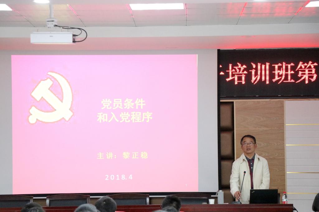 黎正稳从申请入党的条件、党员的基本条件、自觉履行党员的八项义务、正确行使党员的八项权利共四个方面展开,用详实的数字,理性的分析,丰富的实例进行讲授。课上,他希望入党积极分子一要有为实现共产主义而奋斗的决心,二要有全心全意为人民服务的意识,三要有踏实肯干的态度和高尚的品格。