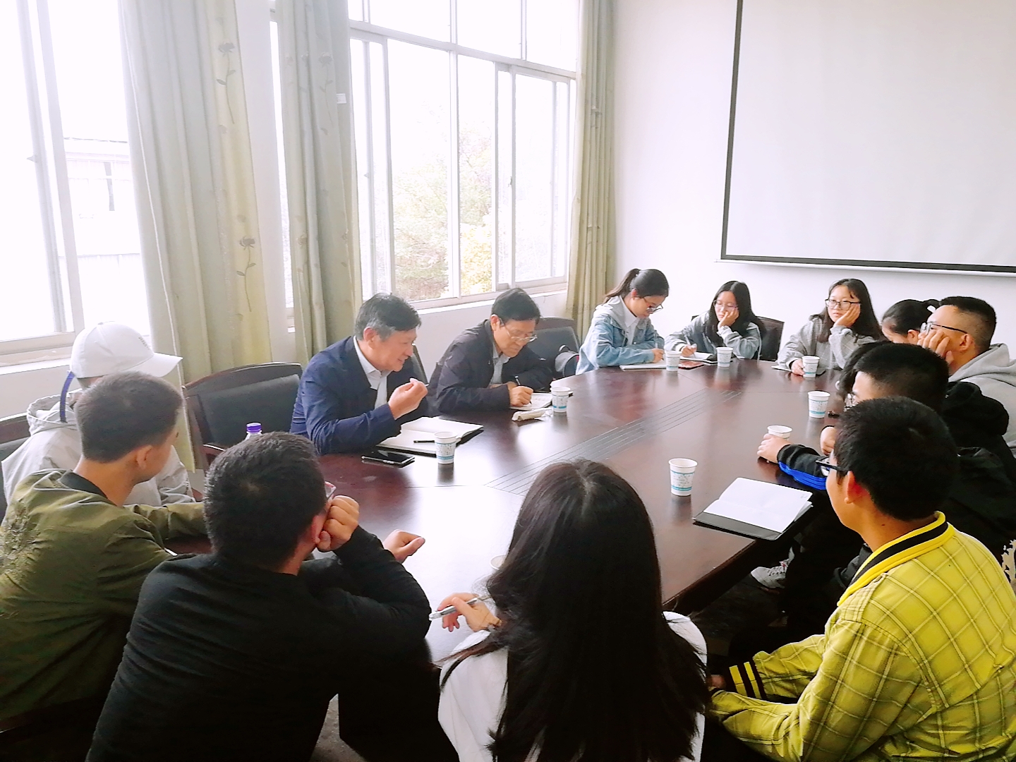 座谈会开始,王副主任以和蔼的语气询问每一位同学近期的生活状况,然后向大家说明座谈会的内容,希望参会同学能够敞开心扉,根据自身情况说明目前遇到的困惑,现实中大学和理想中大学的差异,以及对目前学业的适应程度等,然后在通过讨论和解答的方式进行解决。