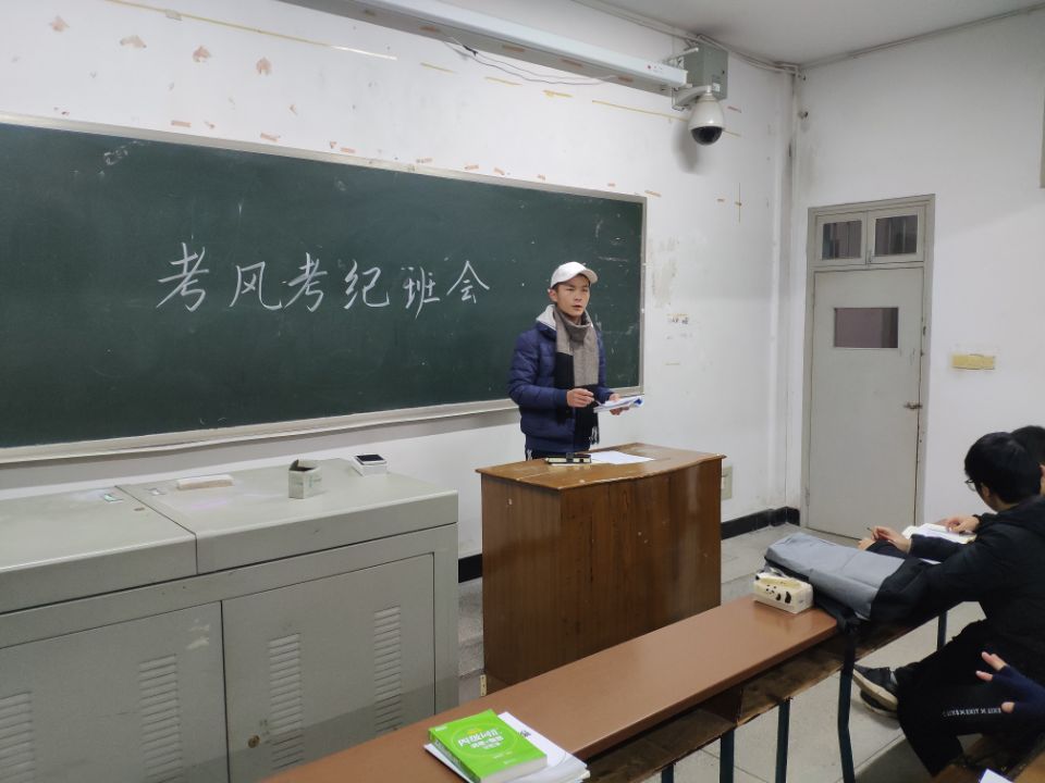 2018年12月12日,汽机学院2018级辅导员老师路平安组织各班班长在金盆岭12教310召开新生考风考纪建设动员会。
