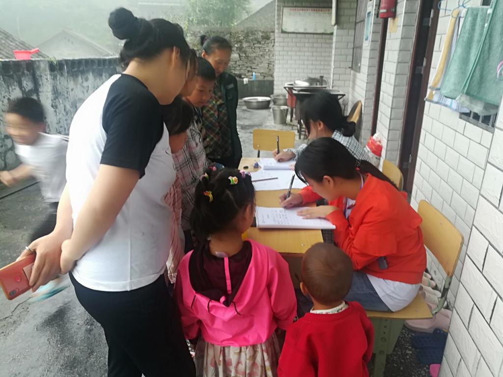 早上,正按部就班忙碌着的我们,突然听见了围墙外传来一阵阵的喧哗声,孩子们来到学校。招生序幕就此拉开。小孩子们都很腼腆不敢向前,在支教老师的鼓励与安排下,孩子们排成队进行登记报名,原计划今天招20余人,然而,两个小时未到,已经30多个孩子前来报名。最后,招生工作圆满结束,其功劳离不开当地政府和居民的支持,甚至很多家长都亲自领着小孩来到学校进行报名。