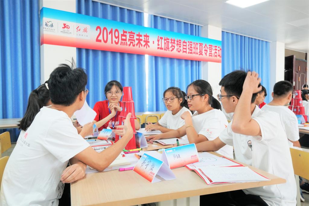 赴广西河池凤山县高级中学 “2019•点亮未来•红旗梦想自强班夏令营活动”于8月5日正式开始,经过开营仪式、生涯规划课程中团队建设和自我探索部分以及资助政策宣讲,首日活动圆满结束。