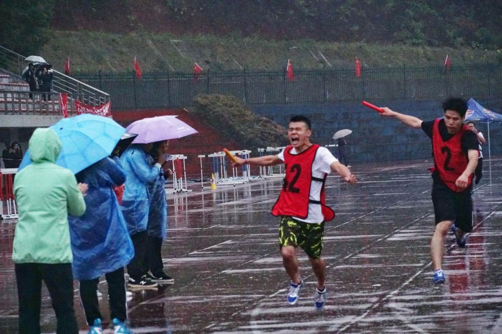 在雨中奔跑,在雨中奋战,汽机的运动健儿们永不言败。谢嘉丽、邱姝颖在雨中以顽强拼搏的毅力坚持跑完3000米。在团队项目中,汽机学子团结协作,奋勇向前。迎风飘扬的院旗在一棒又一棒中进行交接,五千米混合接力无疑牵动了观众们的心。运动员们最后的精彩冲刺赢得了观众们的高声喝彩与欢呼。