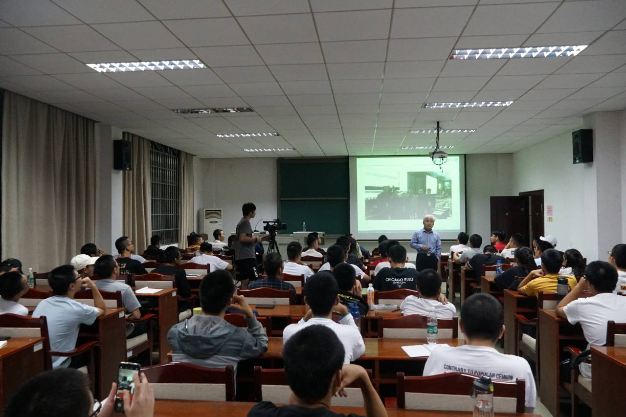 讲座伊始,黄老师通过宝马公司坚持后轮驱动这一事件,与同学们分析探讨车轮前驱与后驱各自的优劣势,激发了同学们的兴趣,并使同学们通过该实例认识到:市场和成本对于技术研发的影响力巨大,在大学里除了计划课程以外,还有必要掌握哲学和经济学等方面的知识。黄老师还进一步对如何学习哲学和经济学给出了具体建议。