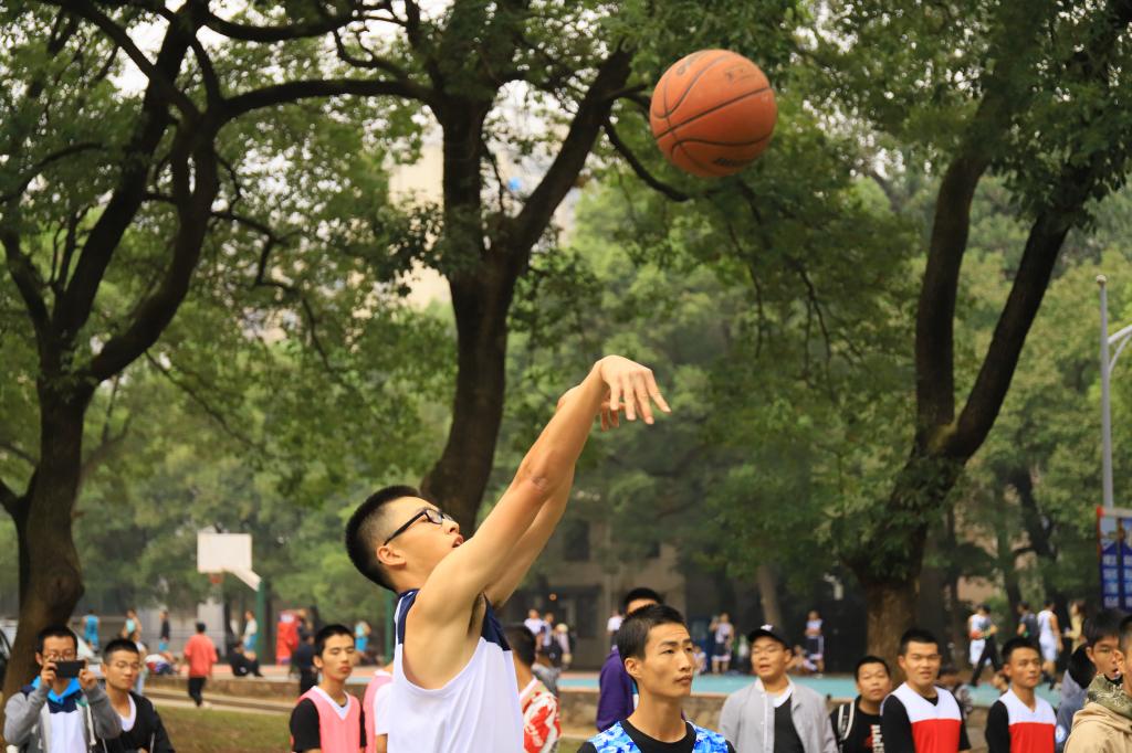 10月15日,“迎新杯”篮球赛开幕式之后,首先进行三分大赛。在这考验个人能力的比赛中,机械1911班吴桓声以七个球的成绩夺得第一名。之后是紧张的小组赛。各班级的篮球运动员们奋勇拼搏,力争上游。运球、防守、进攻、投篮!汗水悄然挥洒,呐喊声响彻校园。