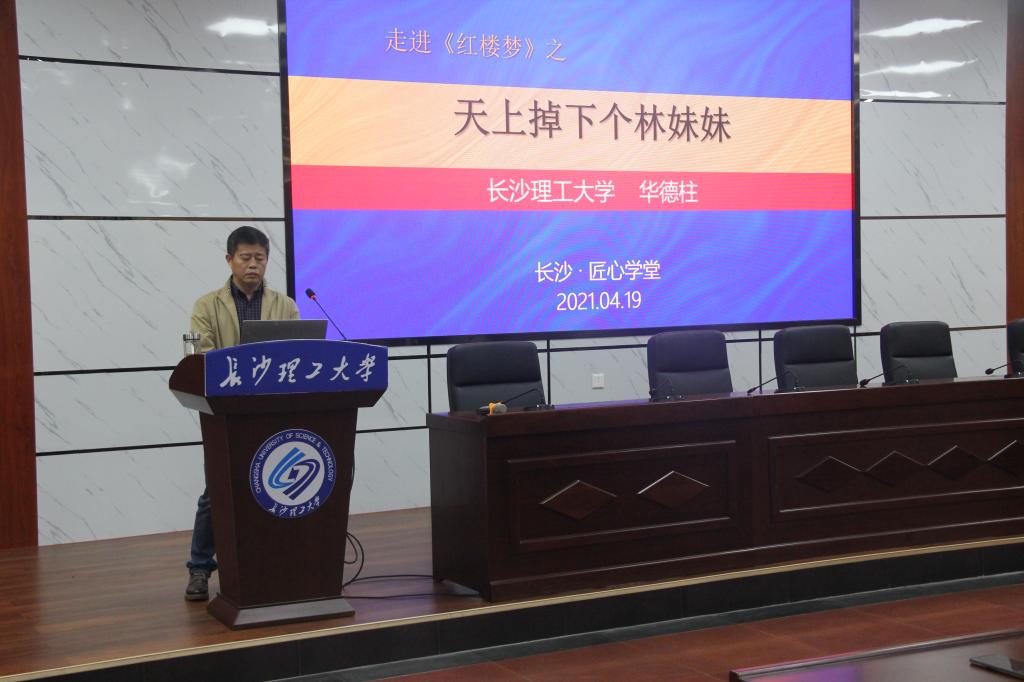 4月19日晚19:00,文法学院华德柱副教授受邀参加长理匠心学堂通识讲坛,于金盆岭校区4教报告厅为同学们做主题为“天上掉下个林妹妹”的专题讲座。
