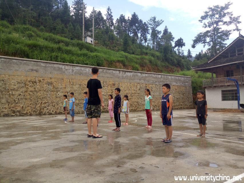 中国大学生网湖南省娄底市新化县7月27日电(通讯员 汪诗洁)27日上午十点,刚刚下过雨的天气尚算凉爽,操场上十几位大班的学生们个个挺直了腰背,双手紧贴裤缝,成军姿站立。原来是体育老师让他们提前体验了一把军训滋味。作为一个团体,有人做了小动作便全班加站一分钟。