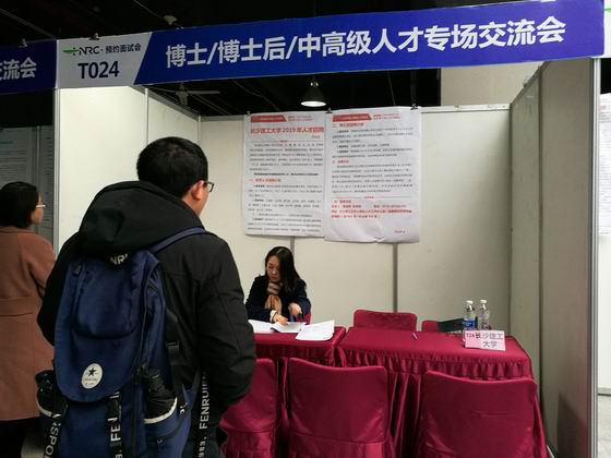 2019年3月16日,人事处参加了由湖南省人力资源和社会保障厅主办、在湖南人才市场举办的湖南省2019年博士/博士后专场人才交流会。