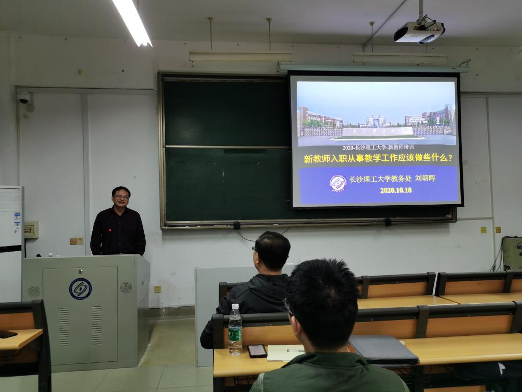 10月18日晚,在金盆岭校区7教314教室,LETOU官网教务处处长刘朝晖教授受邀以“新教师入职从事教学工作应该做些什么?”为题,为2020年教师岗前培训班学员做了教学专题讲座。党委教师工作部副部长、人事处副处长徐欣国及全体培训学员聆听了讲座。