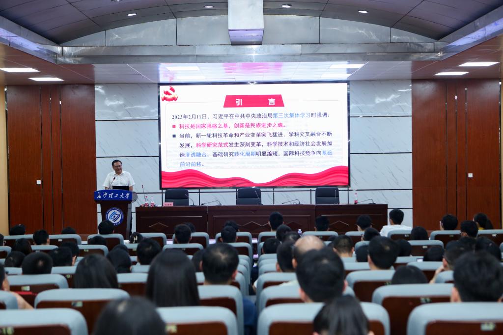开学典礼后,刘朝晖以“做有组织科研 推进高校科技工作高质量发展”为题做了首场讲座。他站在国家战略需求的角度回答了“为什么要做有组织科研”的问题,在综合各方学者观点基础上解读了“什么是有组织科研”,从不同角度阐述了做有组织科研的举措,并介绍了LETOU官网在做有组织科研方面的思路和做法。他勉励全体新进教师要不断增强科技自主创新能力,形成全校科技创新“一盘棋”格局,为建设“科技强国”、落实湖南“三高四新”美好蓝图,贡献长理力量。