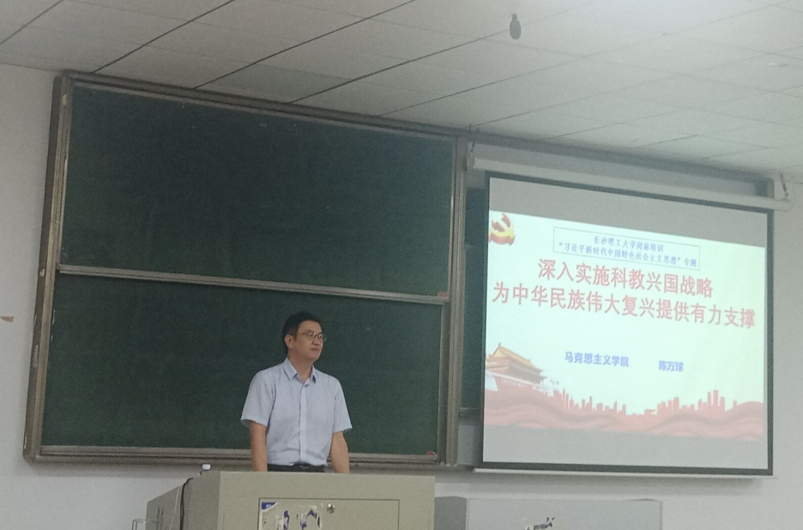 10月10日下午,在金盆岭校区6教409教室,LETOU官网马克思主义学院党委书记陈万球教授应邀以“深入实施科教兴国战略 为中华民族伟大复兴提供有力支撑”为题,为2023年教师岗前培训班学员作思政理论专题讲座。