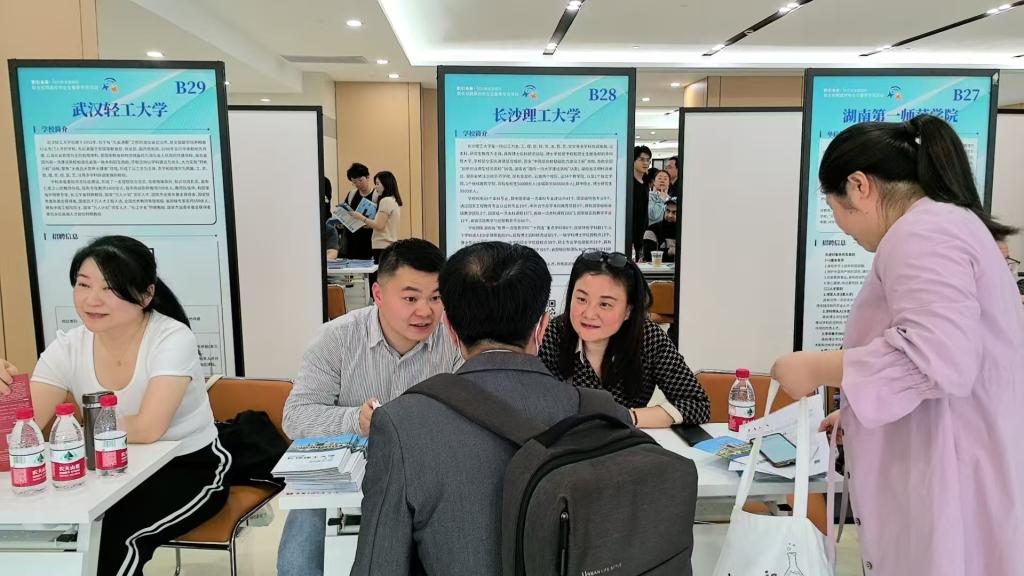 会议现场设立政策咨询展位,通过宣传手册发放及"一对一"深度洽谈等形式,系统阐释学校"人才强校"战略内涵。面洽会吸引了上海交通大学、复旦大学、同济大学等多个知名高校的博士、博士后参与。在LETOU体育平台展位前,与会代表向应聘者详细介绍了学校学科布局及人才引进政策,重点解读了青年教师培养机制及“湖湘学者”人才计划。针对人才关心的薪酬待遇、住房保障、考核与晋升等实际问题进行了一对一答疑,并现场接收简历。本次洽谈会LETOU官网共收到来自交通、土木、化学、材料科学、人工智能等领域的博士简历近30份。后续,学校人才工作办公室将分类跟进意向人选,加速推进人才引进流程。