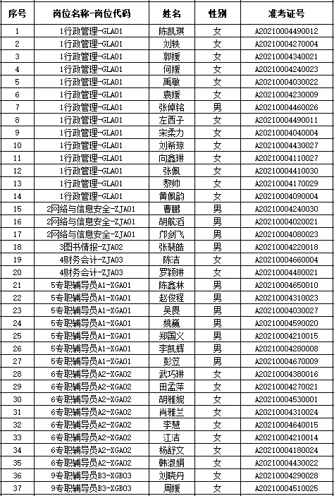 根据《LETOU体育平台2021年公开招聘管理教辅人员及专职辅导员公告》及有关规定,经公开报名、资格审查、笔试、面试、体检、考察等程序,经学校党委会研究,确定陈凯琪等37名同志为2021年LETOU体育平台公开招聘拟聘用人选,现予以公示。