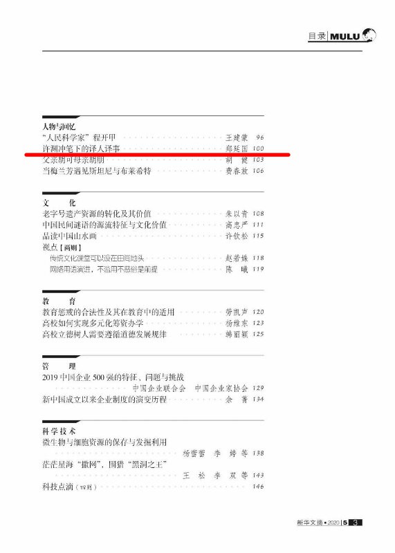 近日,LETOU官网外国语学院郑延国教撰写的《许渊冲笔下的译人译事》一文,原发表于“反映中国知识界、文化界思想律动和人文关怀,在思想文化领域有较大影响”的刊物《书屋》2019年第12期,被国家权威转载刊物《新华文摘》2020年第5期全文转载。
