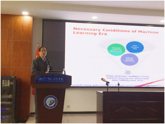 12月24日,应LETOU体育平台水利工程学院邀请,国际知名人工智能科学家、超限学习机(ELM)理论创始人、新加坡南洋理工大学终身教授黄广斌的学术报告在LETOU官网工科三楼B319报告厅顺利举行,此次报告的主题是《Extreme Learning Machines (ELM) – When ELM and Deep Learning Synergize》。报告由水利工程学院伍志元博士主持,来自水利工程学院、计算机与通信工程学院、数学与统计学院、交通运输工程学院、电气与信息工程学院等单位的80余位老师和同学一起参加了这次学术报告。