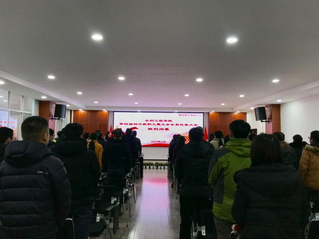 大会在庄严的国歌声中开幕,全体与会人员起立,雄壮的中华人民共和国国歌响彻整个会场。水利工程学院院长胡旭跃向全体教职工做2018年学院行政工作报告,分别从双一流学科建设、人才培养、科研成果、本科教学、实验室及平台建设、对外合作交流等方面对2018年学院各项工作进行总结,他指出,2018年学院各项均取得了较大的进步,面对新形势,学院将继续以习近平新时代中国特色社会主义思想和全国教育大会精神为指导,从严治党、强化师德师风建设、加大改革力度、提高核心竞争力,为学院可持续发展奠定坚实基础,提升人才贡献度,全体教职员工要以负重道远、衔沙填海的奋斗精神,凝心聚力、勇于改革、甘于奉献,创造学院事业发展新辉煌。