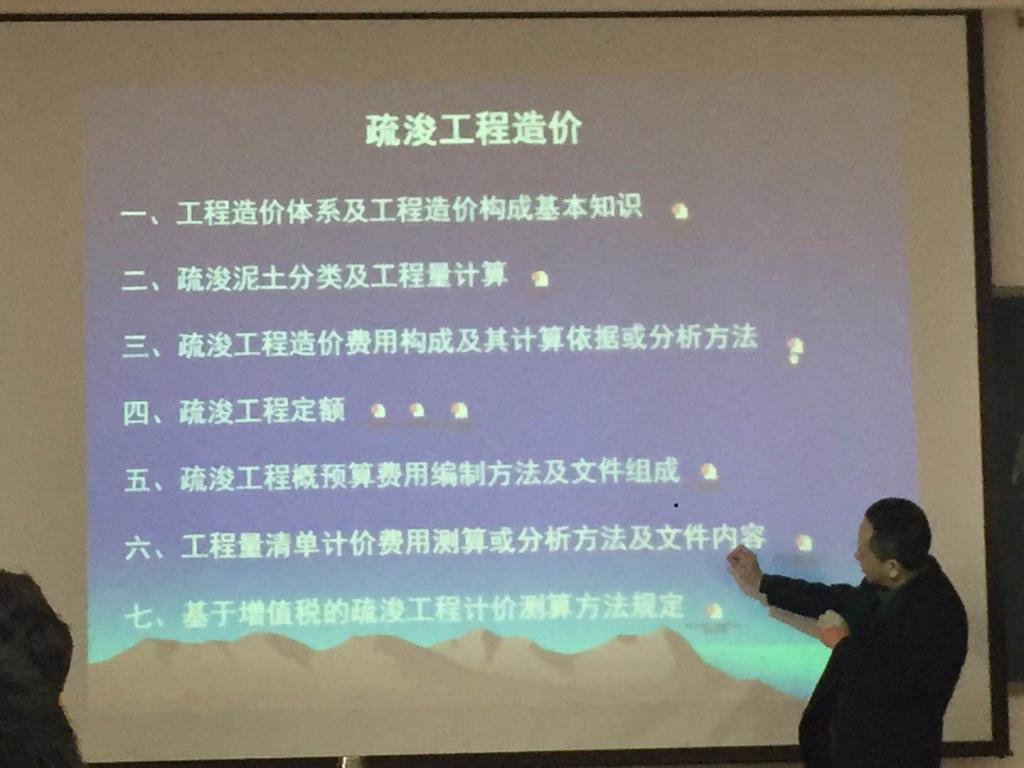 王祖志授课经验丰富、信息量大、语言幽默。他首先生动、系统地向大家介绍了“工程造价体系及工程造价构成的基本知识”,使存在专业性差异的学员对该课程有了一个初步了解。随后,他又深入讲解了“疏浚泥土分类及工程量计算”、“疏浚工程定额”等六项有关疏浚工程造价的课程内容。