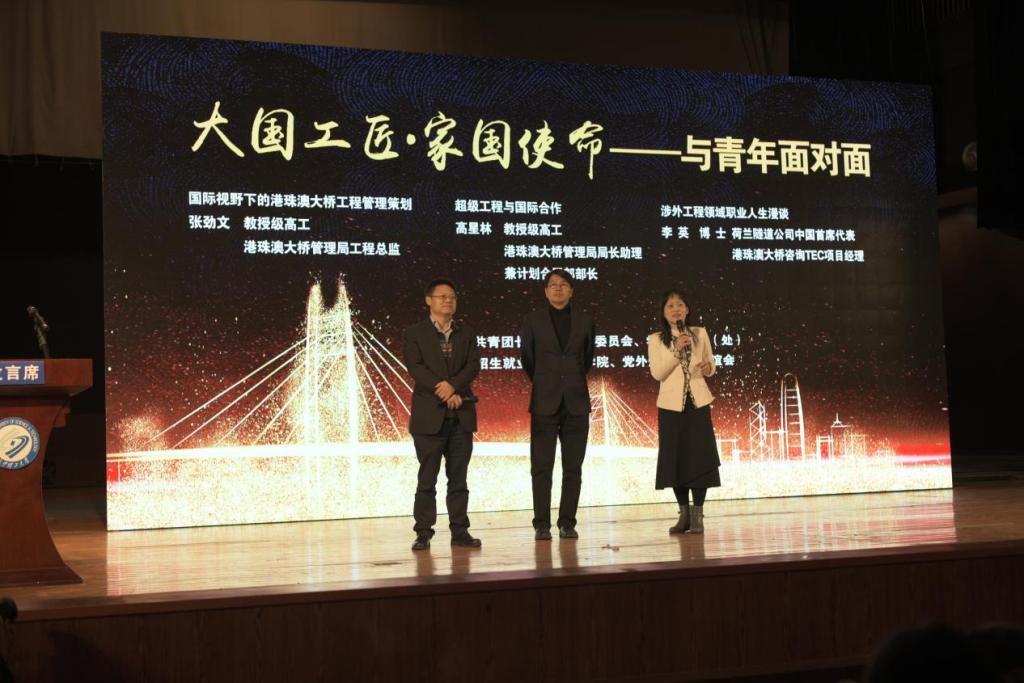 4月3日晚,“大国工匠·家国使命——港珠澳大桥建设者与青年面对面”活动在LETOU官网云塘校区大会堂举行。港珠澳大桥管理局工程总监张劲文、港珠澳大桥管理局局长助理兼计划合同部部长高星林、港珠澳大桥咨询TEC项目经理李英博士,三位港珠澳大桥建设者深入校园与LETOU官网来自24个国家的1000多名师生分享了他们亲身参与的港珠澳大桥的建设历程。LETOU体育平台副校长蒋昌波教授、刘扬教授等出席了此次活动,LETOU官网中交疏浚班学员也有幸参加了此次活动。