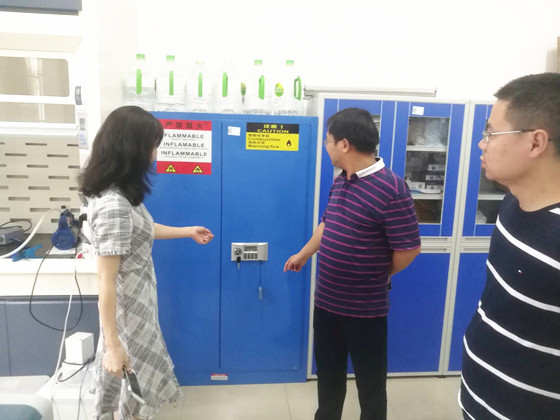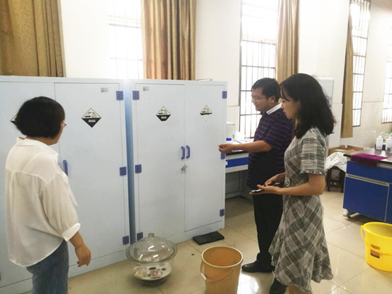 在检查过程中,实验室安全、卫生状况良好,没有发现重大安全隐患,针对个别房间存在实验场地物品杂乱堆放,废气排放很不合理,没有危化品购买及使用台账,危化品没有实行专人管理等现象,检查人员专门指出并要求立即整改。