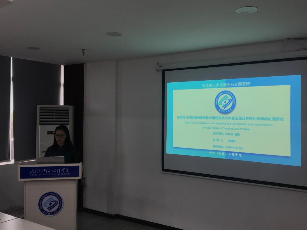 开题报告会上,两位博士后分别对其课题(文晓凤博士后-微塑料对洞庭湖洲滩湿地土壤性质及其中重金属迁移转化影响的机理研究,孙聚龙博士后-紫外/氯耦合超滤工艺去除AOM过程中膜污染机理及DBPs生成转化规律研究)的选题依据、研究意义、研究方案、拟解决的关键技术、技术路线及预期成果等方面进行了汇报。在提问答辩环节中,就各位专家的提问,答辩人讲述清楚,并详细回答了专家提问。