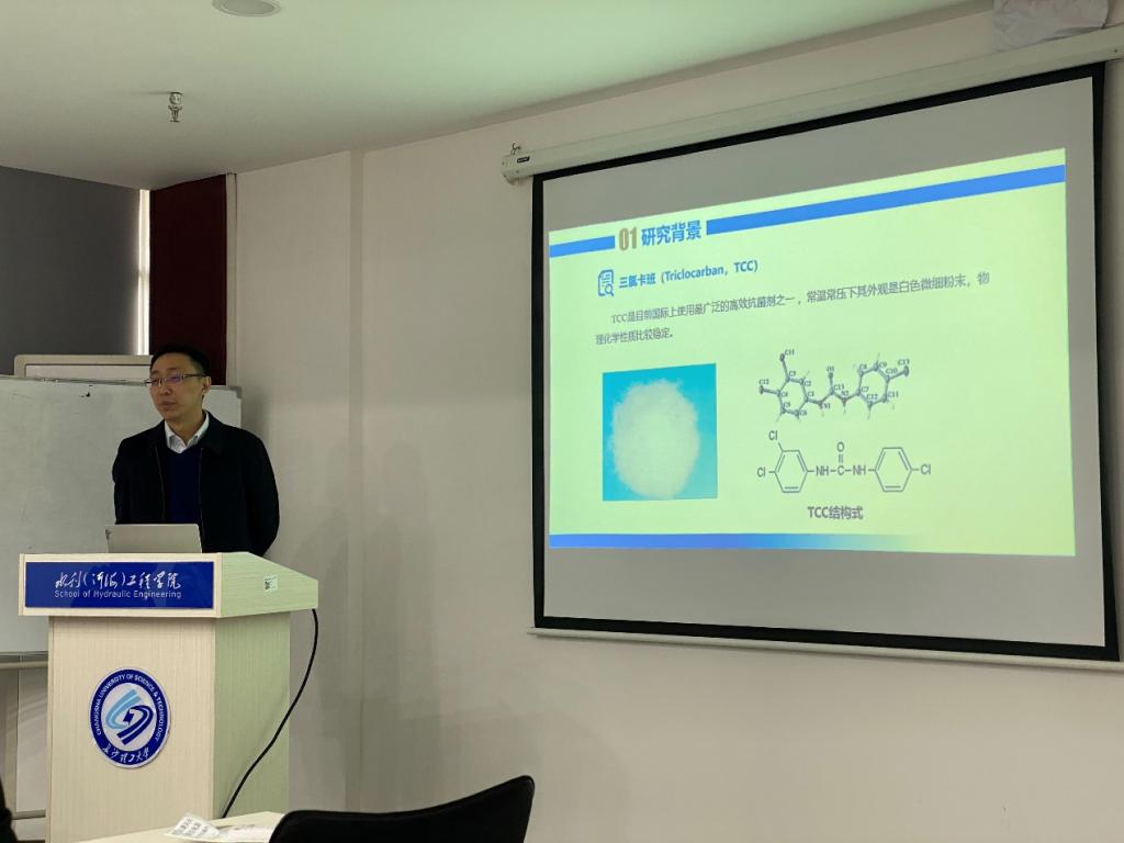 王冬波还为LETOU官网师生作了一场《三氯卡班在硝化系统中的行为及其影响》专题讲座。随后,我院2018级硕士生王泓同学和2019级硕士生涂智同学分别作了《一段式自养脱氮生物反应器的研发及性能研究》和《单级自养脱氮气升式自循环分区反应器的脱氮性能研究》的学术汇报;并由王冬波对其分别进行指导。