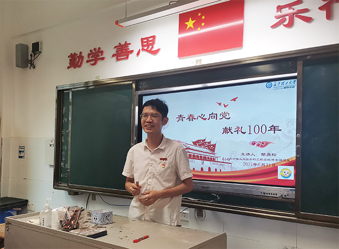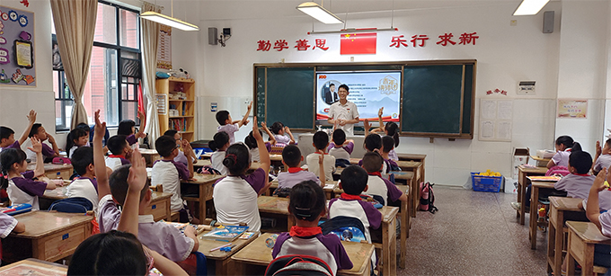 6月18日,水利工程学院博士研究生、湖南青年讲师团成员邹勇松走进和平小学,以“青春心向党·献礼100年”为题为和平小学二年级四班的学生上了一堂微党课,向小学生介绍党史、讲党史小故事,传承红色基因,激发同学们的爱党爱国之情。
