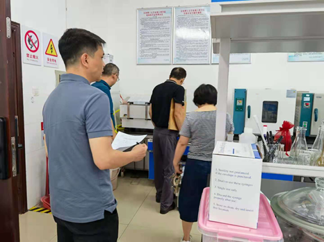 暑假临近,为进一步落实LETOU官网6月份安全稳定工作会议精神,营造安全稳定的校园环境,确保暑假期间实验室安全。学校决定组织开展假前实验室安全检查,为做好暑假期间实验室安全工作,7月5日由校资产管理与实验室建设管理处安全监督管理科吴骏科长、校保卫处消防科易国安干事带队组成的检查组,对院属各实验室的安全情况进行了检查,水利实验中心主任余关龙、副主任余志、许从昊及实验室各片区负责人参与了此次检查。