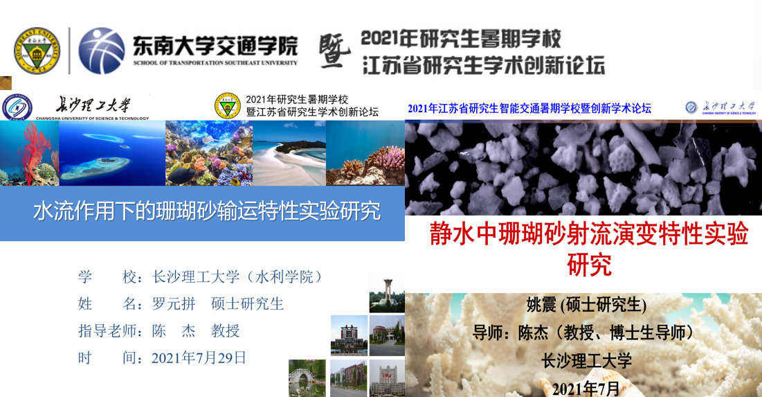 在研究生学术创新论坛上,我院硕士研究生罗元拼作做了题为“水流作用下的珊瑚砂输运特性实验研究”学术报告,我院硕士研究生姚震做了题为“静水中珊瑚砂射流演变特性实验研究”学术报告。